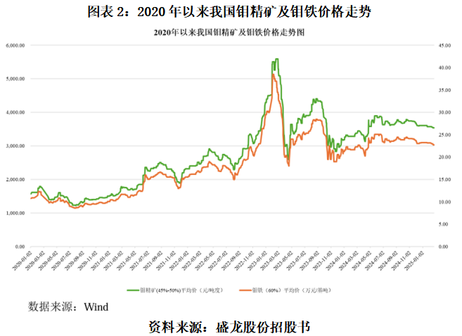 从价格端来看,招股书显示,2021—2022年,随着全球公共卫生事件得到控制,经济逐步向好,叠加全球地缘政治紧张加剧,环保趋严制约供应端扩产,钼价快速上涨。