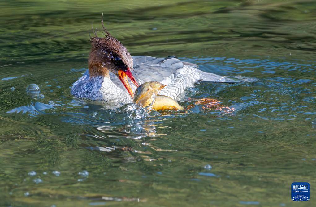 12月20日,中华秋沙鸭在大樟溪中觅食。新华社记者 魏培全 摄